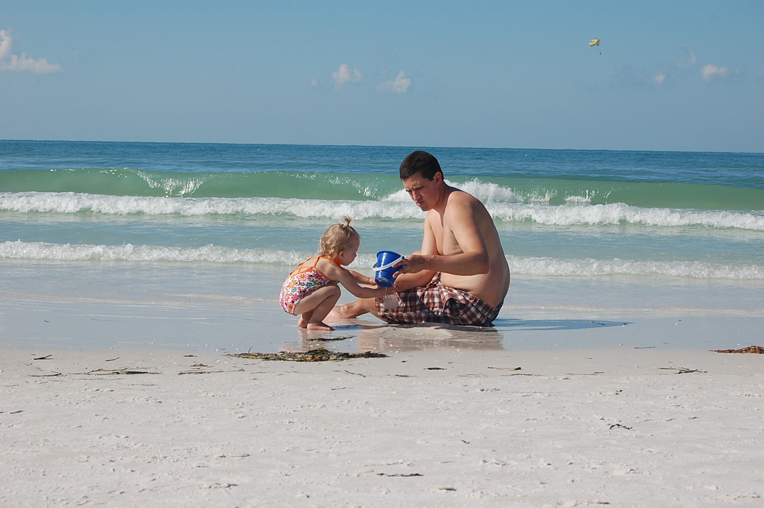 Our first day, the girls, Scott, and Dad spent a little bit of the morning at the park and beach. We then spent the majority of the day at the pool. We couldn't get Elli to put her floaties on during our first trip to Florida a couple weeks ago, but we were successful this trip. And when the floaties were on, she wanted to swim by herself!